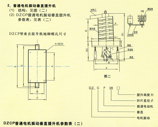 振動垂直提升機主要用于顆粒狀、粉狀、塊狀混合物料的提升。該機占地面積小,結(jié)構(gòu)簡單,維護方便,好能少,運轉(zhuǎn)穩(wěn)定。輸送過程中同時完成冷卻、烘干、篩選、等工藝,對有害物料和粉塵可密封輸送。型號功率電壓設(shè)備重量(kg)外型尺寸HH1H2H3H4H5Φ1Φ2A1B1ABDZC05151......